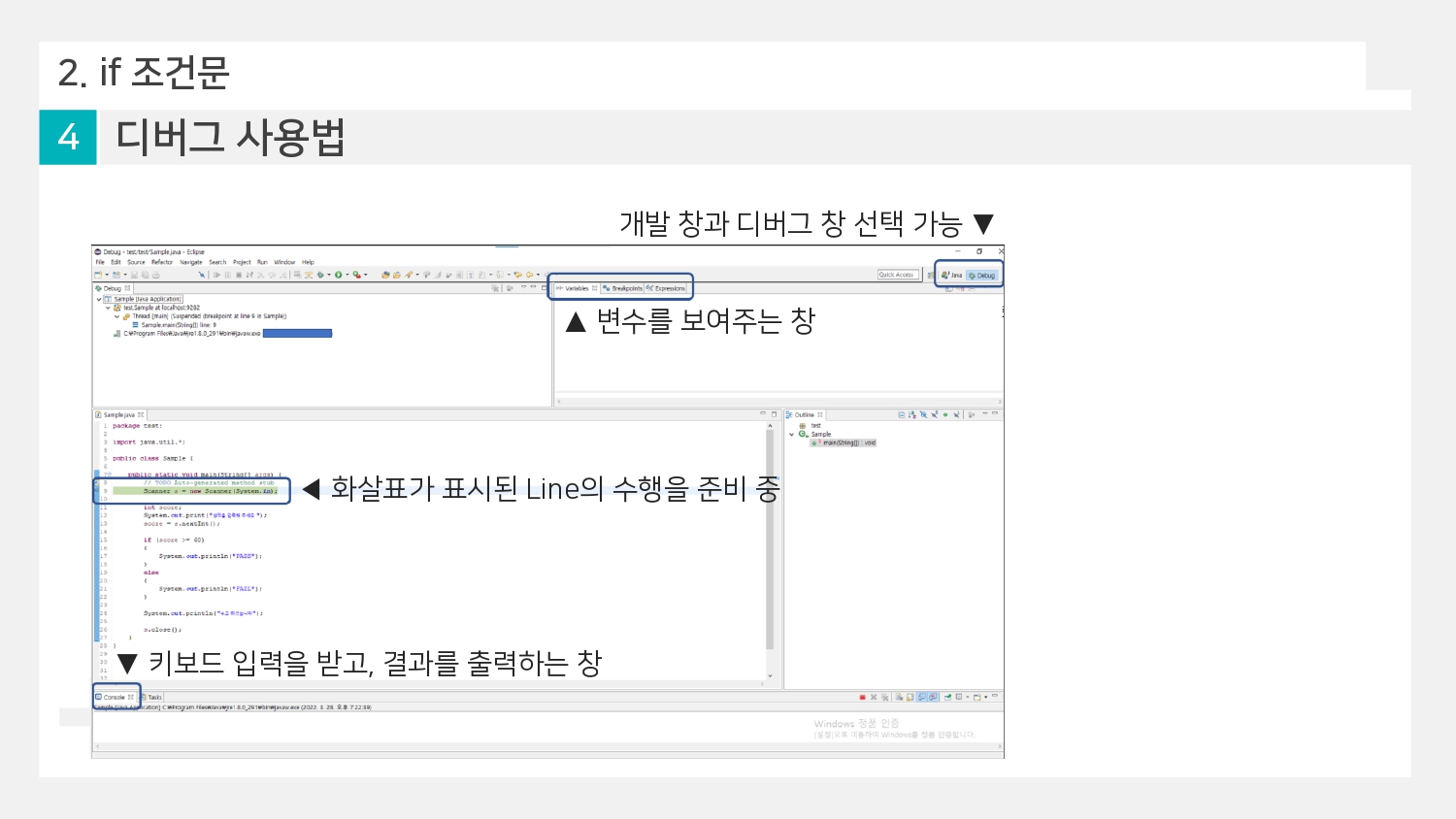 - 조건문에 따른 진행 상황을 파악할 수 있음